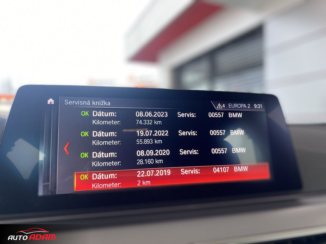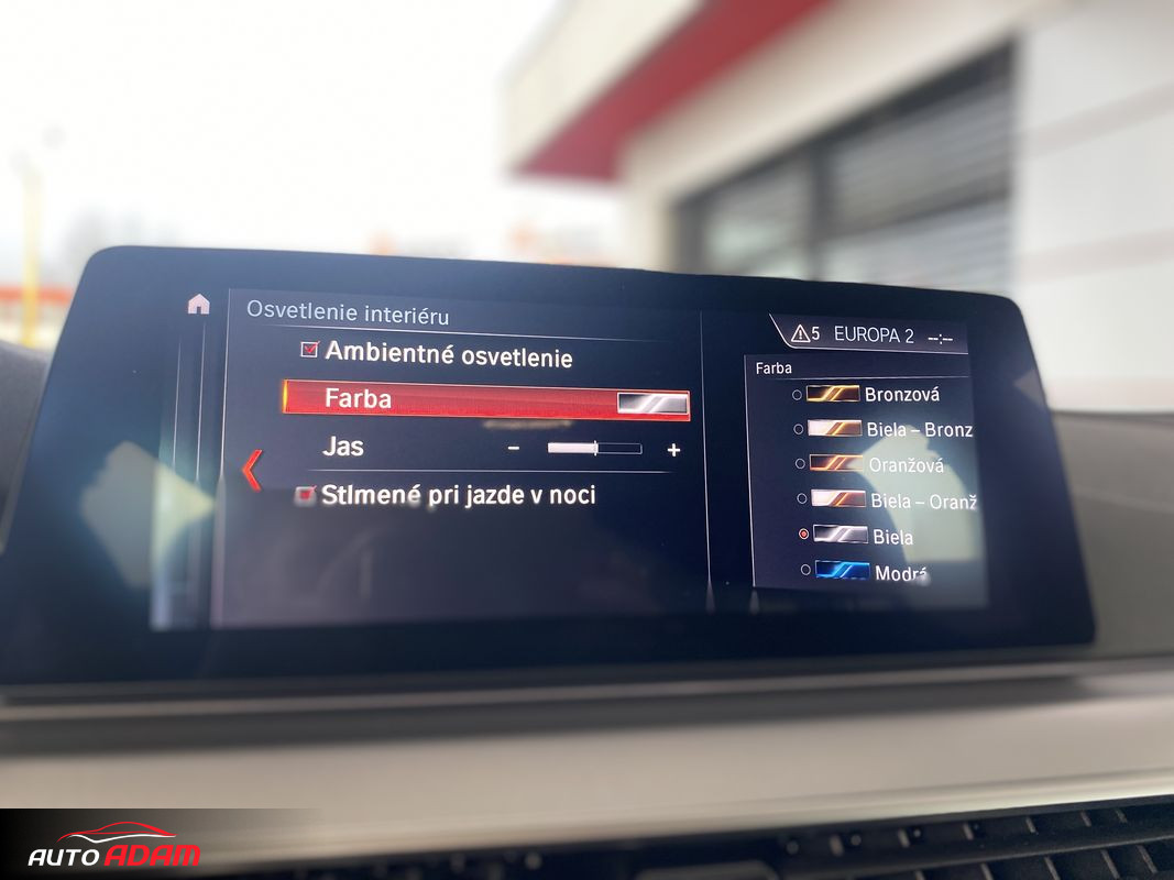 Vstup usb, BMW Adaptive LED svetlomety, autohold, determické spätné zrkadlo ľavé, Limiter-obmedzovač rýchlosti, výstraha pred osobami, nárazom, opustením jazdného pruhu, asistent sledovania mŕtveho uhla, výstraha pred bočnou kolíziou, Režim Sport Comfort Eco Pro, automaticky sklápateľné spätné zrkadlá, asistent kontroly pozornosti, Ambientne osvetlenie interiéru